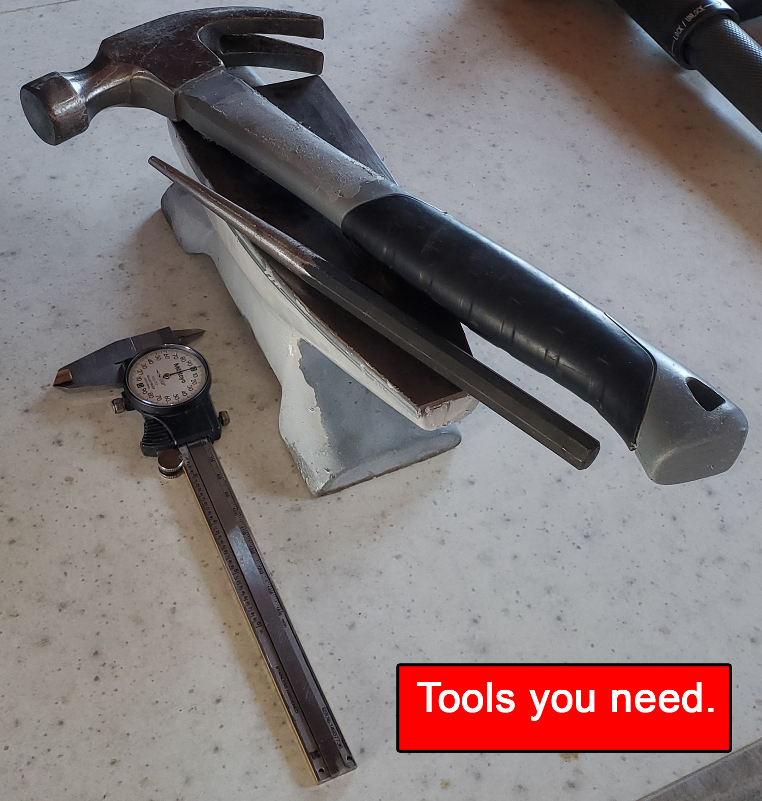 The OAL of the Krebs Safety was .512” or just over a half inch. I grabbed my hammer, a larger diameter flat-faced punch, the safety, and took them over to my little anvil. (See Above)